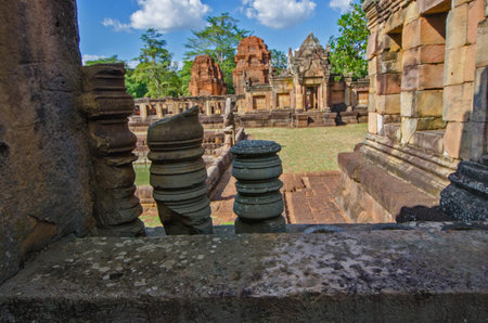 Ruins of the Hindu temple in the Phimai Historical Park in Nakhon Ratchasima, Thailand. It is one of the most important Khmer temples in Thailand.