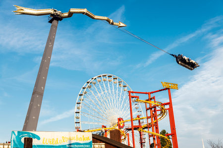Vienna, Austria - April 25, 2024: Prater, amusement park, famous place of fun and entertainment