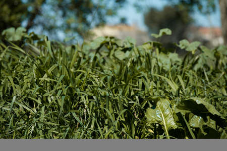 Close up view of fresh green grass background. Agriculture. Abstract fresh green background