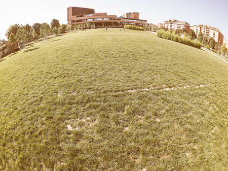 TURIN, ITALY - CIRCA SEPTEMBER, 2015: Palazzo di Giustizia meaning Courthouse seen with fisheye lens vintage
