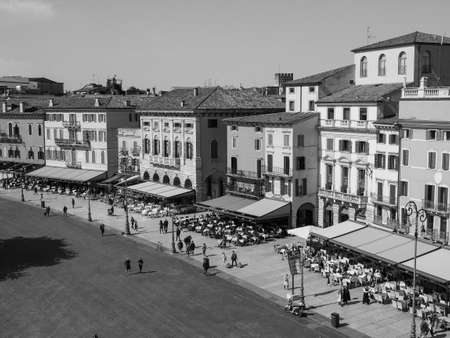 VERONA, ITALY - CIRCA MARCH 2019: Piazza Bra square in black and white