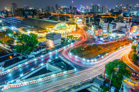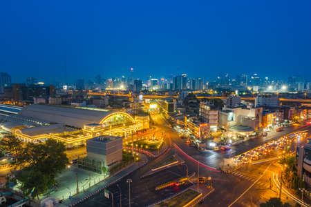 BANGKOK, THAILAND - MARCH 24 : Bangkok central train station (Hua Lamphong Railway Station) and MRT satation with area view Bangkok on MARCH 24, 2018 in Bangkok Thailand