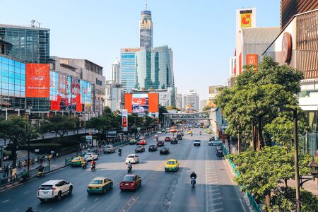 BANGKOK, THAILAND - December 14 2019: Heavy traffic in front of Central World. Central World is one of the most jammed traffic congestion in Bangkok metro city