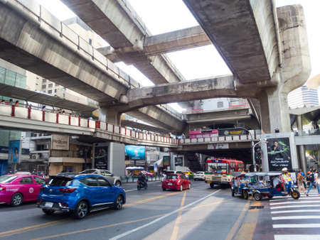 Bangkok, THAILAND - February 16, 2019: The traffic at asoke intersection with many vehicle in bangkok Thailand