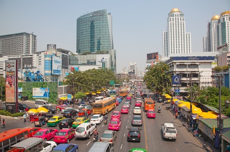 BANGKOK - MARCH 3: Daily traffic jam in the afternoon on March 3, 2012 in Bangkok, Thailand. Traffic jams remains constant problem in Bangkok despite rapid development of public transportation system.