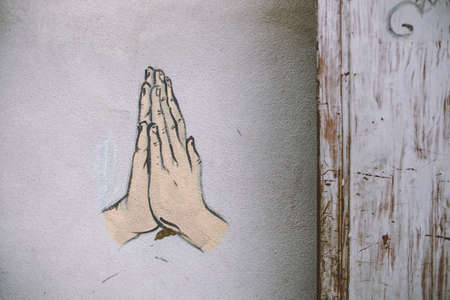 A little prayer, A boy is praying seriously and hopefully to Jesus, Pay respect prayer concept for faith spirituality and religion. Religious beliefs Christian life crisis prayer to god.