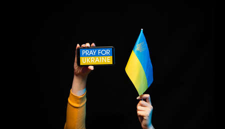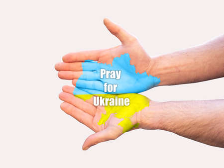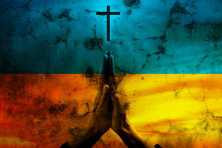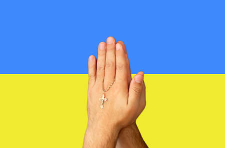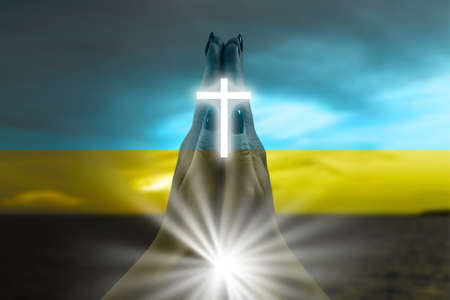 Pray for Ukraine, flag Ukraine. Russia vs Ukraine stop war. Pray Ukraine, eucharist therapy bless god helping, belief, forgiveness, freedom, hope and faith, christian religion concept
