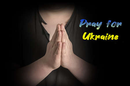 Man's hands folded in prayer. Pray for Ukraine. Relations between Russia and Ukraine.