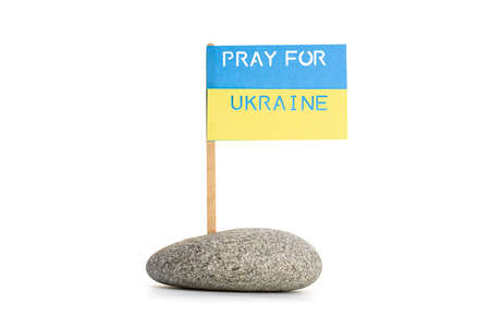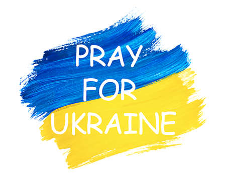 Pray for Ukraine message on Flag of Ukraine isolated on white background