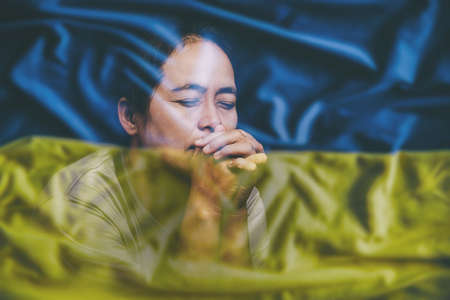 Flag of Ukraine and the face of a praying, a prayer for peace in Ukraine, Ukraine and the world