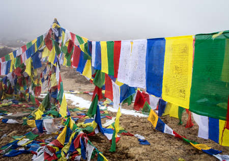Tibetan Buddhist Prayer Flag include red, green, yellow, blue and white colors in Sikkim, India.