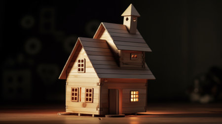 Model of a wooden house on a dark background. The concept of real estate.