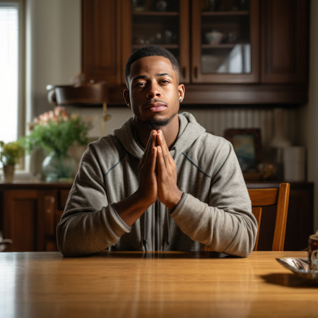 Young man praying at home
