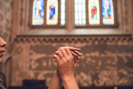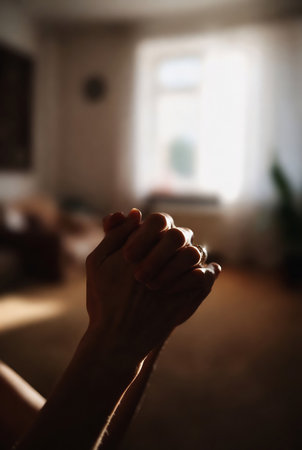 Praying with hands and praying together with religious faith and belief in god on blessing background The power of hope or love and devotion.