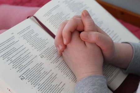 Teenage girl hand with Bible praying in the morning. concept for faith, spirituality and religion