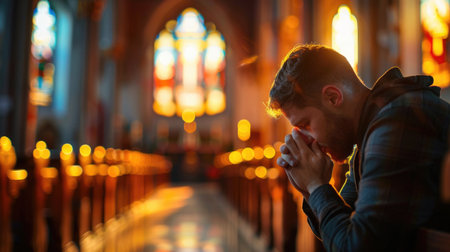 person kneeling in repentance and contrition, seeking forgiveness and renewal through prayer and faith. Generative AI