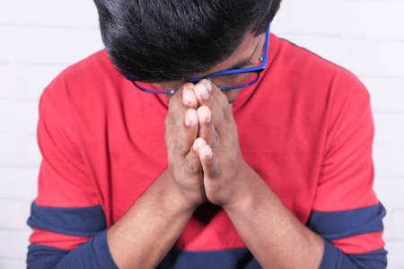 Man praying close up background.