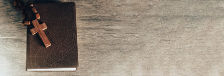 The Holy Bible on a wooden table. Christian origin. The concept of faith, hope, and love.