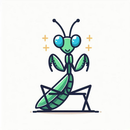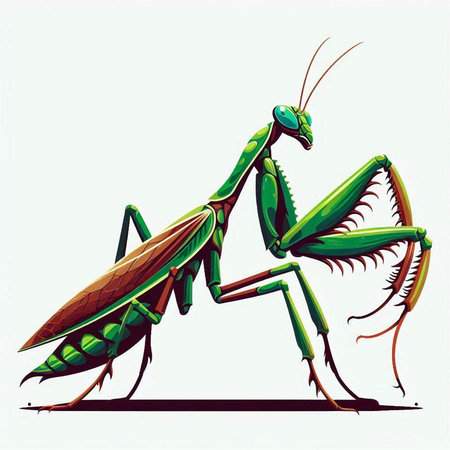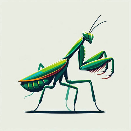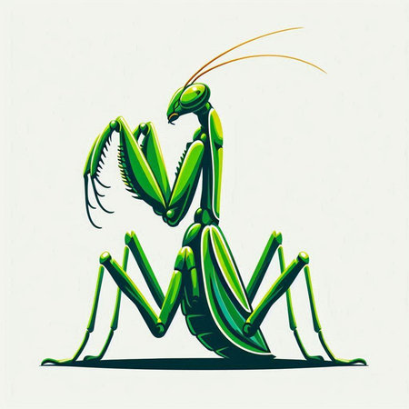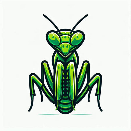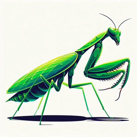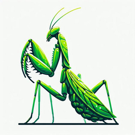 Vector illustration of a green praying mantis on a white background.