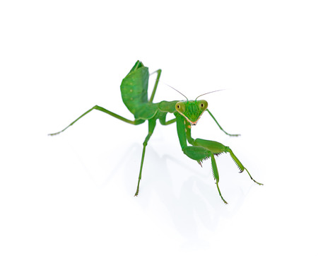 Green mantis isolated on white background