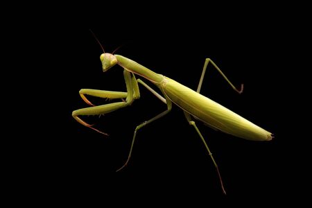 Giant Asian Yellow Praying Mantis (Hierodula membranacea) isolated on black background.