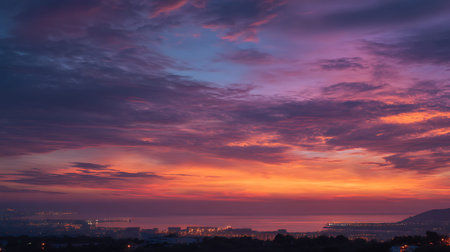 Capture the magic of a vibrant sunset with rich colors blending in the sky and soft clouds, perfect for nature lovers and travelers seeking tranquility.