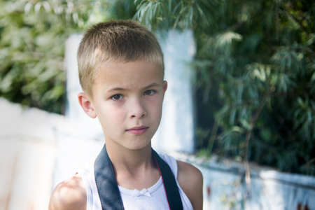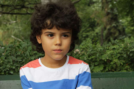 Portrait of a child boy outdoors on a warm sunny summer day.