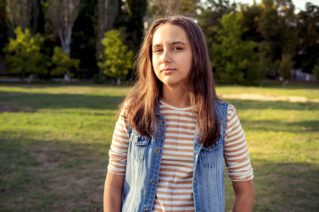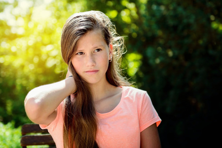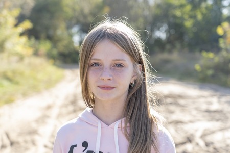 Portrait of young girl outdoor, 12 years old