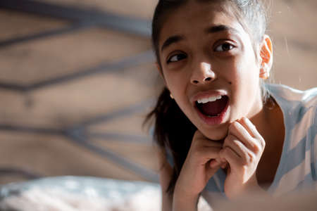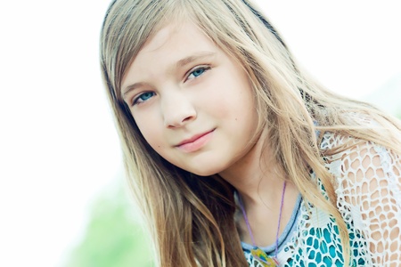 Close up portrait of a cute little girl of 9-10 year old