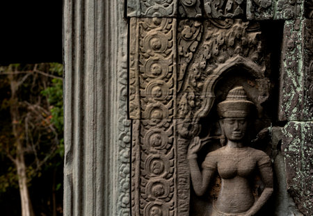 Stone carving in Angkor Wat, Siem Reap, Cambodia