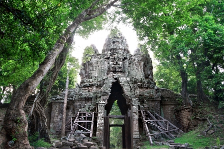 Gate to the temple with the head of the deity in the temple complex of Angkor