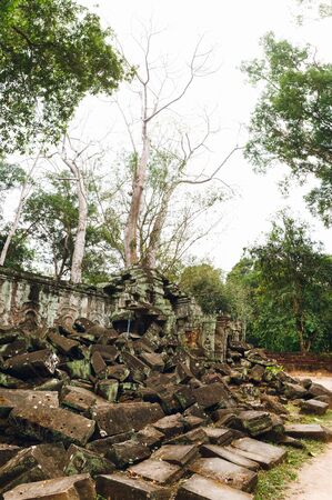The ruins of Ta Prohm temple among the trees. Siem Reap, Cambodia.