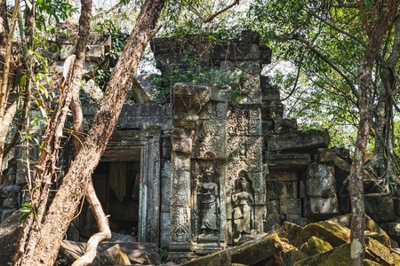 Banteay Kdei temple with silk cotton tree roots in Angkor, Siem Reap, Cambodia.