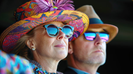 Horses racing at the Kentucky derby close up. Generative AI illustration.