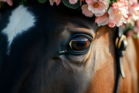 Generative AI Image of Beautiful Majestic Horse Eye for Race Competition The Melbourne Cup Australia