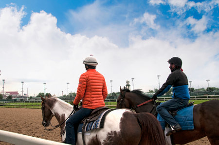 Two Horses Race for Morning Workouts with jockey silhouettes