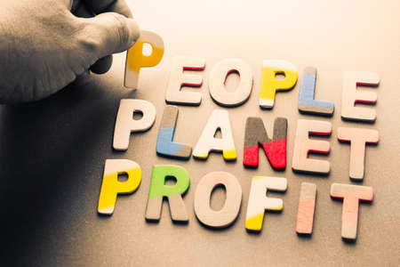 People Planet Profit, text words typography written with wooden letter on black background, life and business motivational inspirational concept