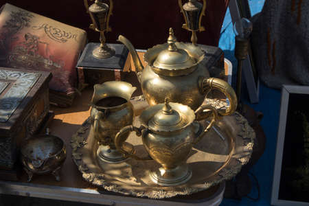 Street flea market of old things and antiques in the old district