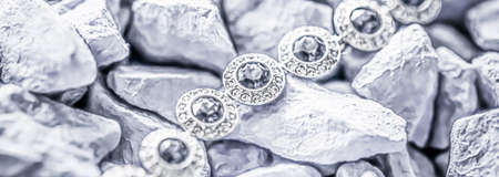 jewelry, jewelry, bijouterie and luxury concept - close up of silver rings, earrings and bracelets