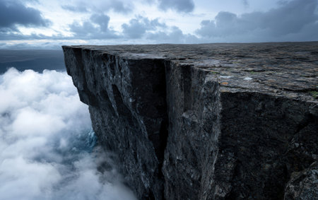 Experience the thrill of standing on a majestic cliff surrounded by a sea of clouds. This stunning landscape captures the beauty and isolation of nature's wonders.