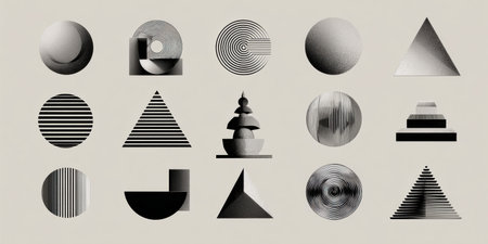 This image showcases an artistic collection of geometric shapes and textures arranged in a minimalist style, ideal for various design or art projects.