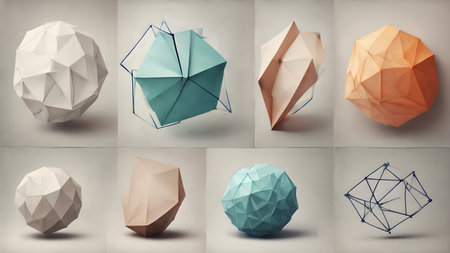 Abstract Modern geometric 3D shapes Background. Geometric shapes geometric shape with mesh net dots and connections. AI generated image