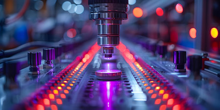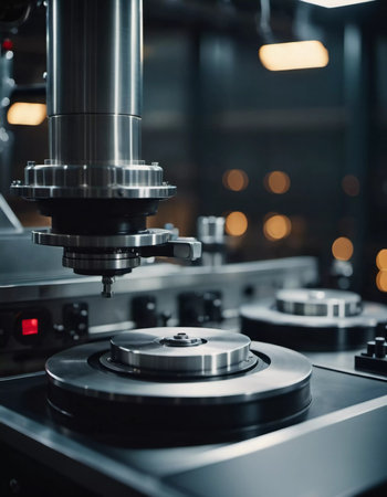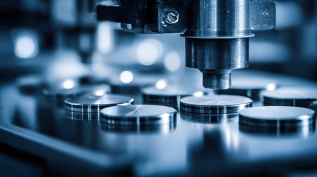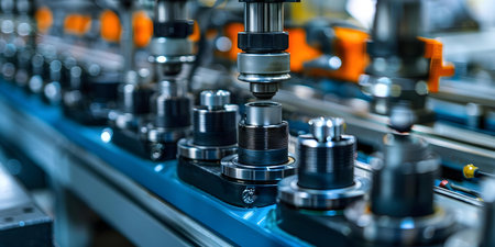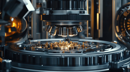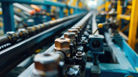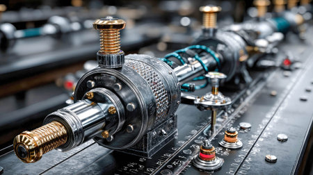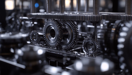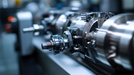 This striking close-up image showcases precision engineering components, highlighting intricate details of a modern manufacturing setting, ideal for industrial projects.