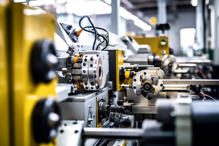Cutting-edge machinery operating within a manufacturing facility. Generative AI