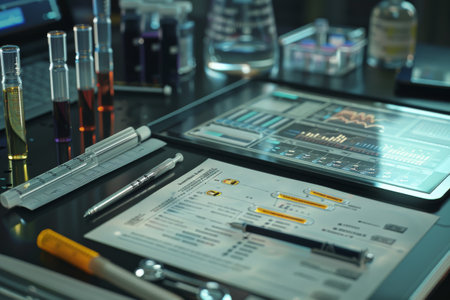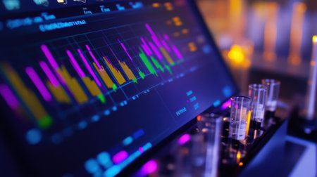 A focused analysis of financial data displayed on a tablet in a modern laboratory, showcasing stock market trends and graphical indicators for insightful decision-making.