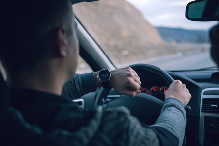 Man checking time while driving.