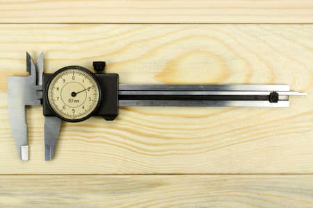 new caliper on a wooden table, selective focus