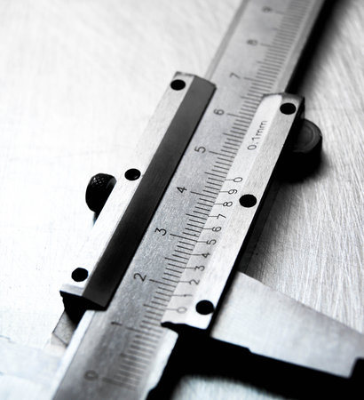 Measurement Concept. Steel Vernier Caliper or Calliper Tool Closeup.