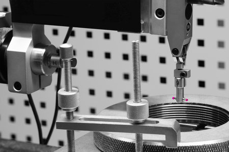 Close up of 3D dimension measurement plastic parts by CMM, 3D automatic measuring system