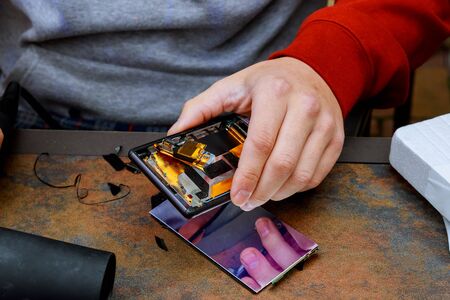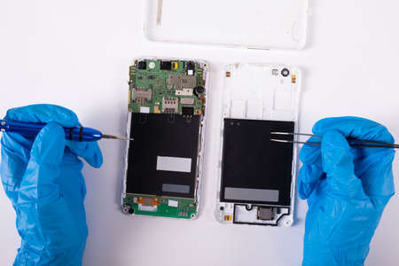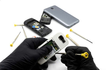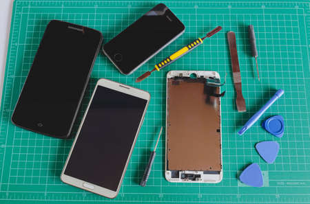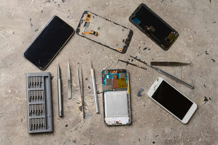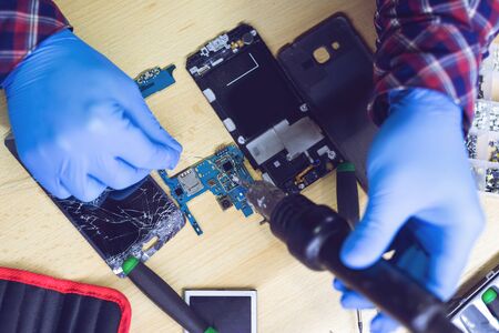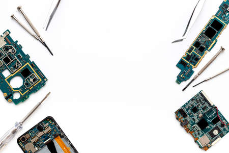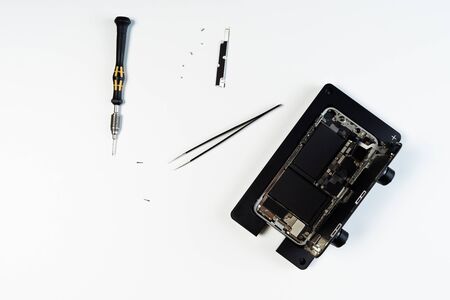 Repairing and upgrade mobile phone, electronic, computer hardware and technology concept.